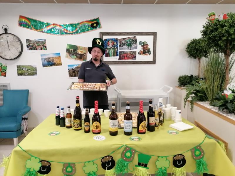 Ce mardi -17 mars 2026, pour débuter les festivités, l'ensemble de l'équipe avait proposé aux résidents et à leurs proches de se retrouver autour d'une dégustation de bières, aux sons de balades irlandaises.