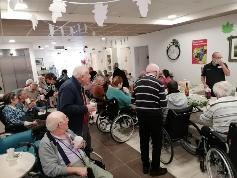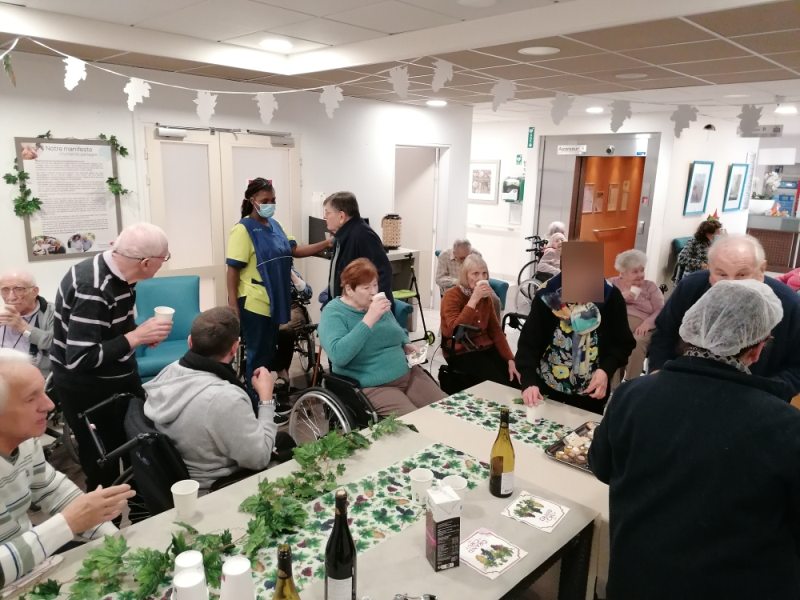 Cette année, la cuvée de vin du Beaujolais Nouveau est arrivée le 20 novembre. Célébré depuis 1951, cet événement a rassemblé les résidents, leurs familles et le personnel de l'EHPAD autour d'un apéritif festif au cours duquel chacun de nos connaisseurs a pu apprécié une dégustation du vin nouveau accompagné d'amuses bouches.