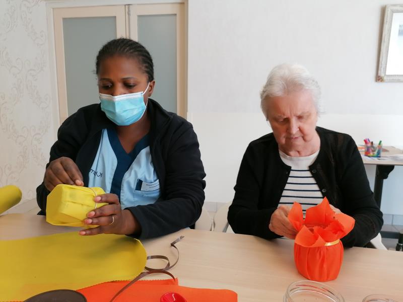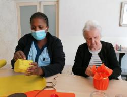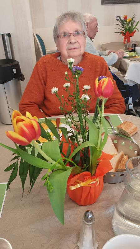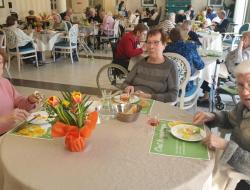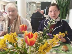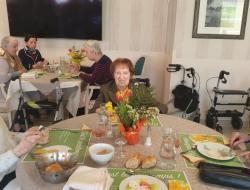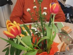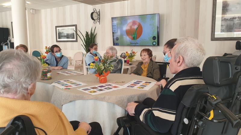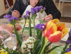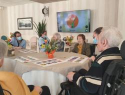 Très heureux de retrouver sur la table du déjeuner leurs compositions florales préparées l'avant veille, les résidents ont eu le plaisir de poursuivre la journée par un bain de soleil sur la terrasse, pour les uns, pour les autres de participer à un "loto des fleurs".
