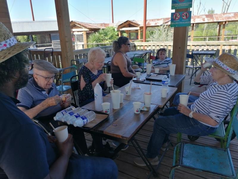 Jeudi 7 août 2025, l'animatrice et deux infirmiers ont accompagné se promener des résidents de l'unité classique et des unités de vie protégée de la résidence médicalisée d'Esbly au parc animalier immersif Parrot World situé à Crécy-La-Chapelle.