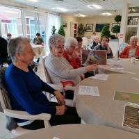 Publiée le 02/05/2023Si l'on tend bien l'oreille, nous pouvons entendre leurs chants, leurs cris, leurs piaillements, leurs vocalises,... Avec l'arrivée des beaux jours, l'animatrice proposait, ce lundi 24 avril, un atelier-conférence sur le thème des "oiseaux de nos jardins". A l'aide de photos, d'indices graphiques et sonores, les résidents des Tourterelles d'Esbly, struct [...] Lire la suite