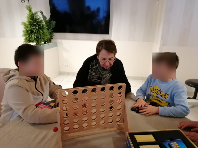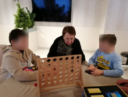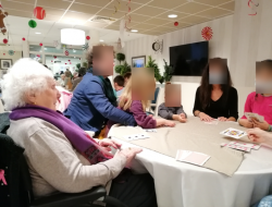 Accompagnés de leurs parents, les enfants étaient très heureux de retrouver les résidents autour de jeux de société. Une ambiance joyeuse, conviviale et chaleureuse a rapidement gagnée la salle à manger de la résidence.Cet heureux temps s’est poursuivi par le partage d’un goûter bien apprécié !