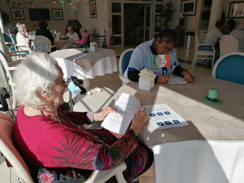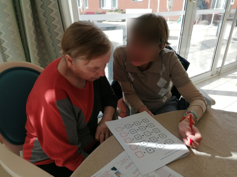 L'animatrice de la résidence médicalisée, proche de Marne-La-Vallée, a proposé à nos aînés divers ateliers autour de l'arithmétique et de résolutions de problèmes. Très heureux et fiers de prouver qu'ils n'avaient rien perdu de leurs facultés à raisonner, additionner, soustraire, multiplier,... les résidents se sont prêtés au jeux avec assiduité et amusement.
